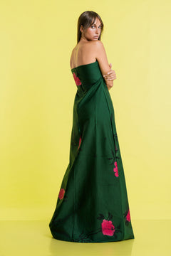 The Emerald Rose Tube Dress from Bloomstate – Festive Edit I features a strapless tube silhouette with rose-inspired batik detailing in rich green tones. Designed to contour softly while allowing ease of movement, this dress balances structure and fluidity.